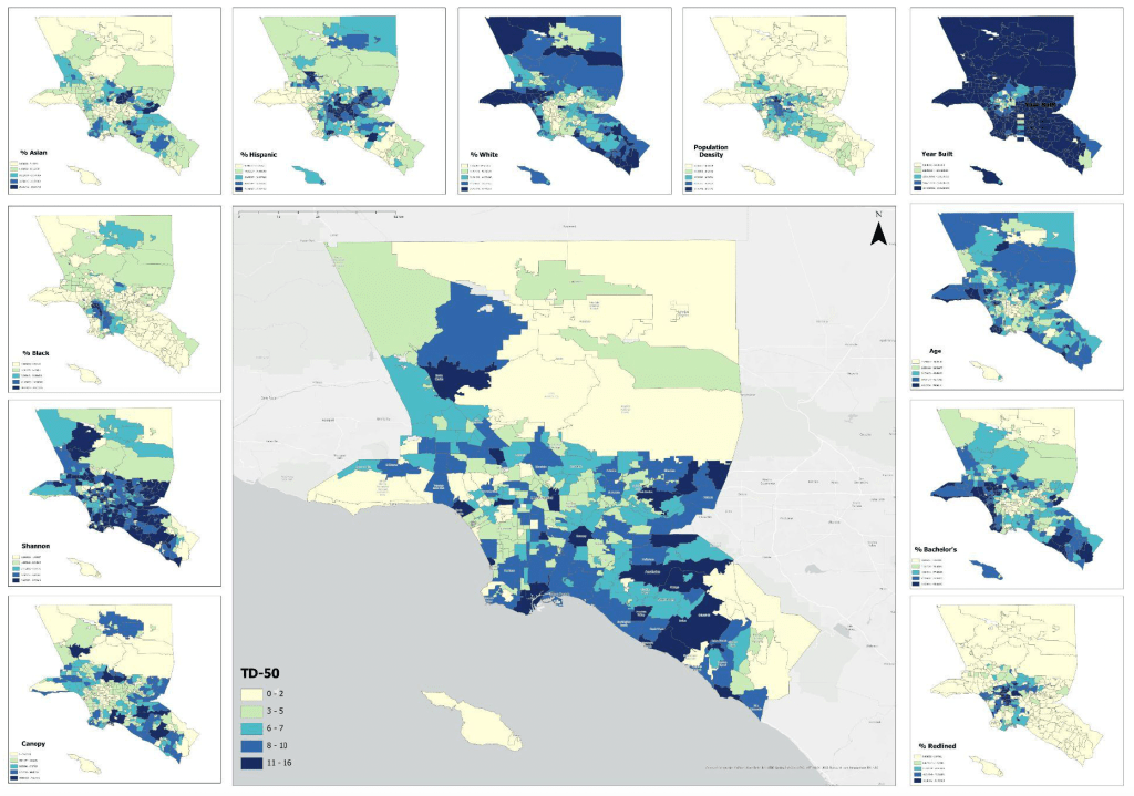 Using street tree data from the California Urban Forest Inventory, we assessed the equitable distribution of tree diversity in Southern California communities. Although we found inequitable distribution in canopy cover, there was little evidence that street tree diversity was related to socioeconomic and sociodemographic factors such as income and race. This work was lead by Cal Poly master’s student Cami Pawlak.